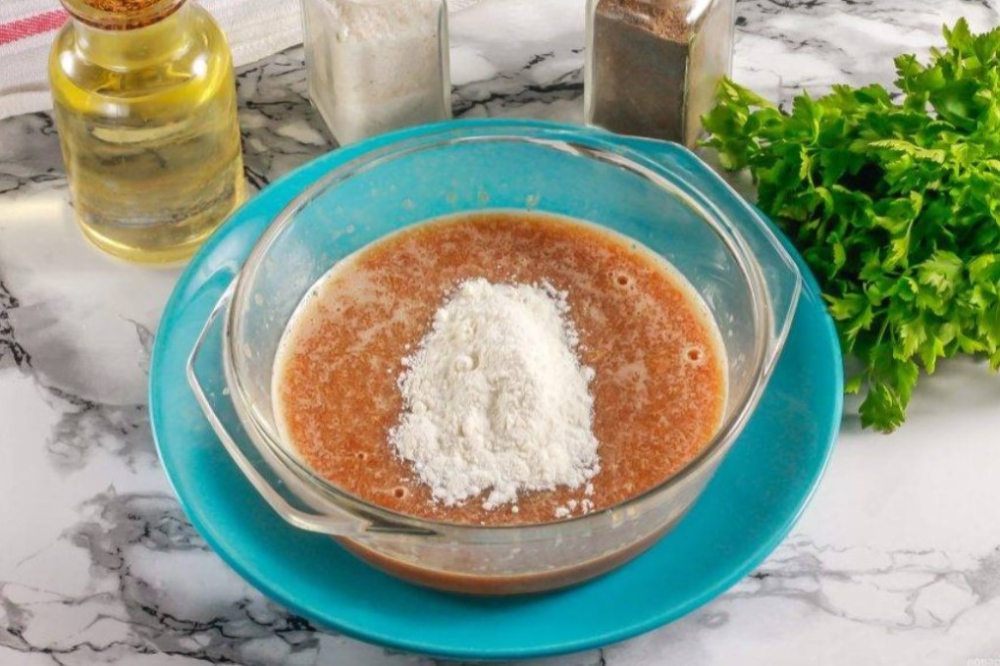 3. Борошно доцільно вводити поступово. Якщо маса занадто щільна, смак ікри губиться, а якщо занадто рідка, оладки розповзаються по сковороді.