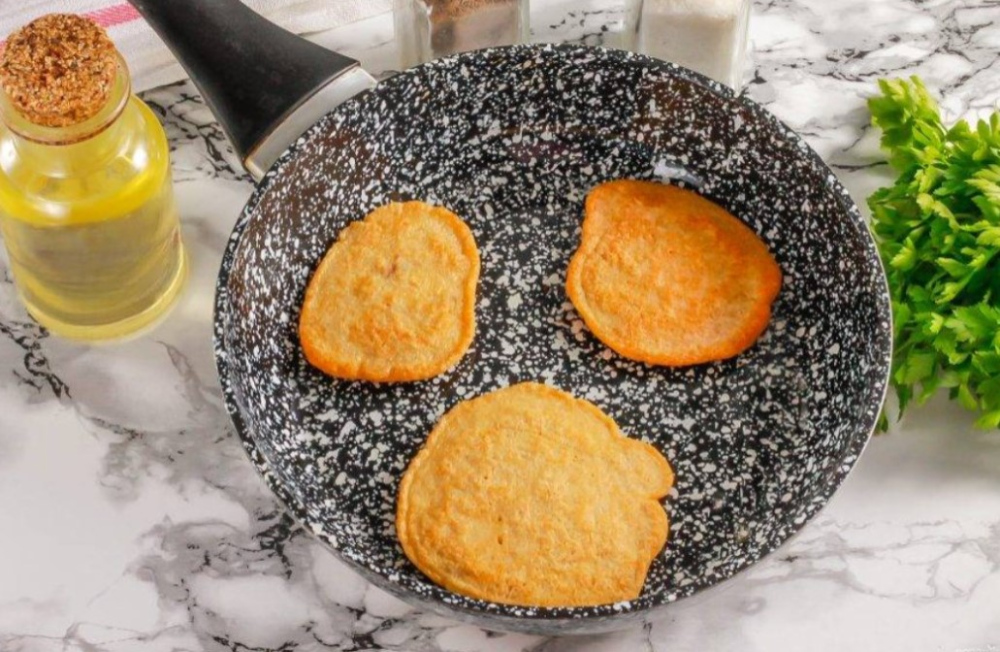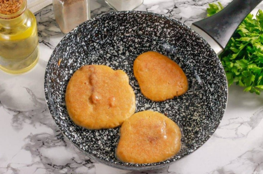 Сковороду прогрівають, додають трохи олії, а тісто викладають невеликими порціями. Млинці смажаться на помірному вогні, тоді поверхня поступово рум’яниться, а середина встигає добре приготуватися. Після перевертання друга сторона доходить швидше, тому важливо зберегти соковиту текстуру й не пересушити ікру.